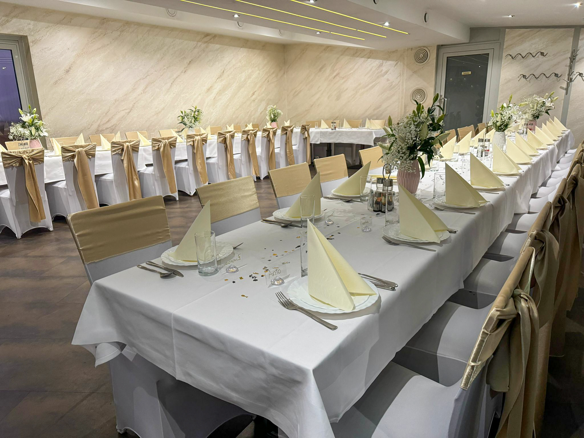 Feiern Sie unvergessliche Momente in unseren Räumlichkeiten – perfekt geeignet für Hochzeiten, Geburtstage und alle Arten von Festen.